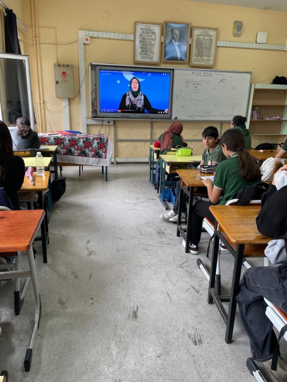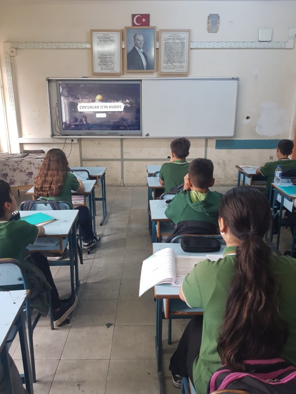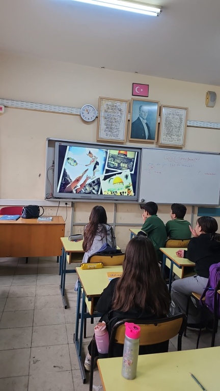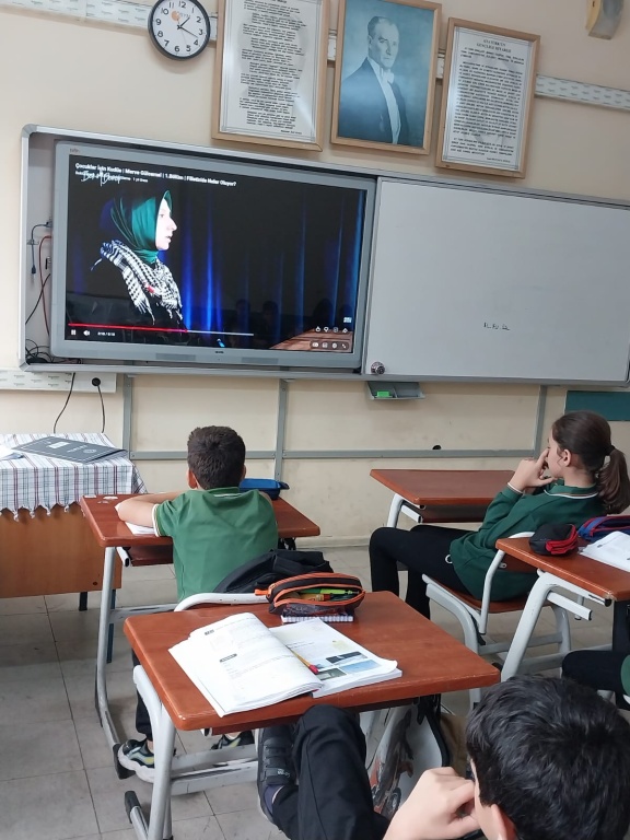 Bakanlığımızın81 ilde eşzamanlı olarak düzenlediği; öğretmenlerimizin ve öğrencilerimizin katılımıyla 5. ders saatinde Filistin ve Gazze temalı video izlendi.
